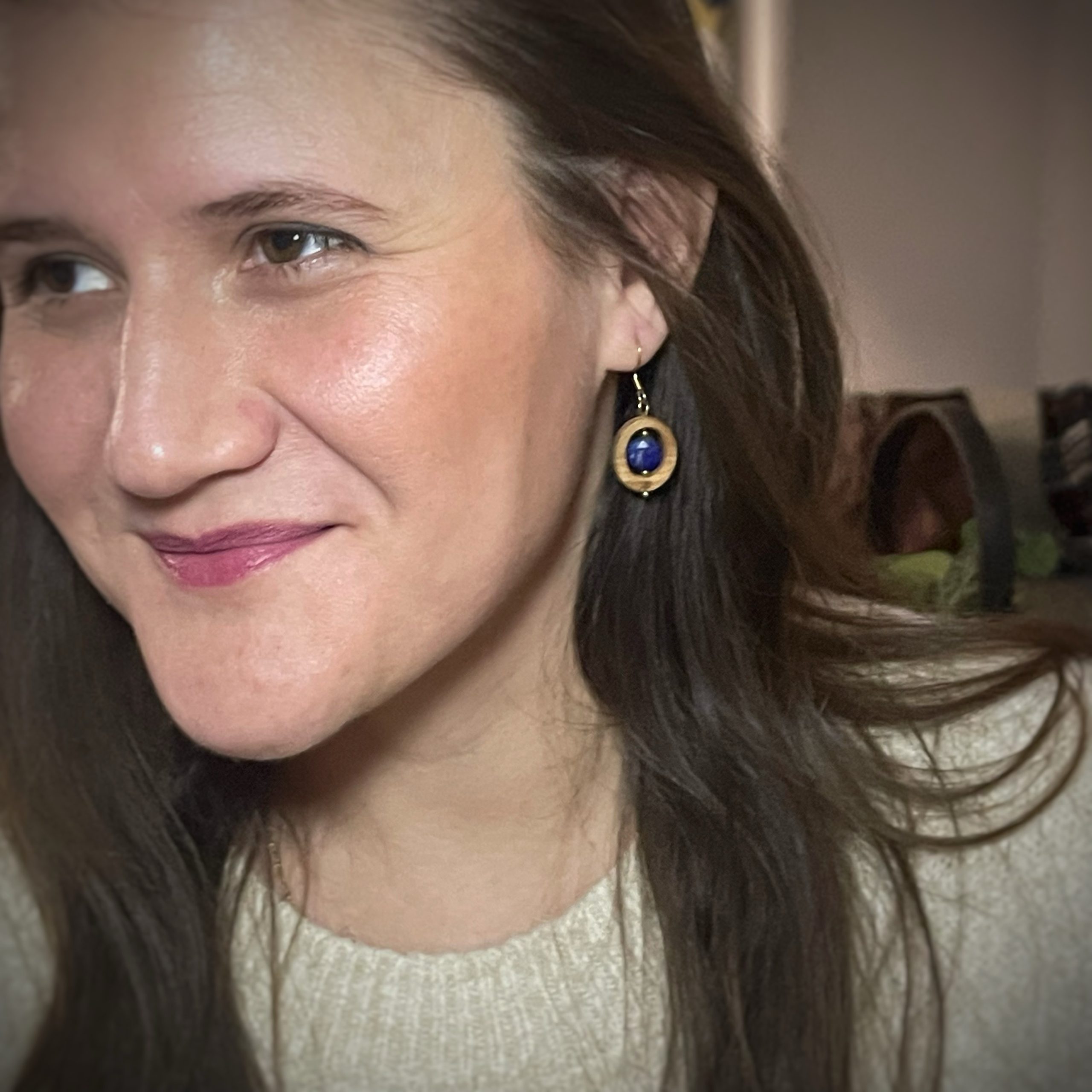 Dans le noyer foncé, le lapis-lazuli révèle toute son intensité. Intime devient un bijou à la présence profonde et affirmée, où la pierre centrale se détache avec élégance. Le contraste entre le bois sombre et la pierre crée un bijou structuré et chaleureux, pensé pour accompagner celles et ceux qui avancent avec conviction, sans renoncer à leur douceur.