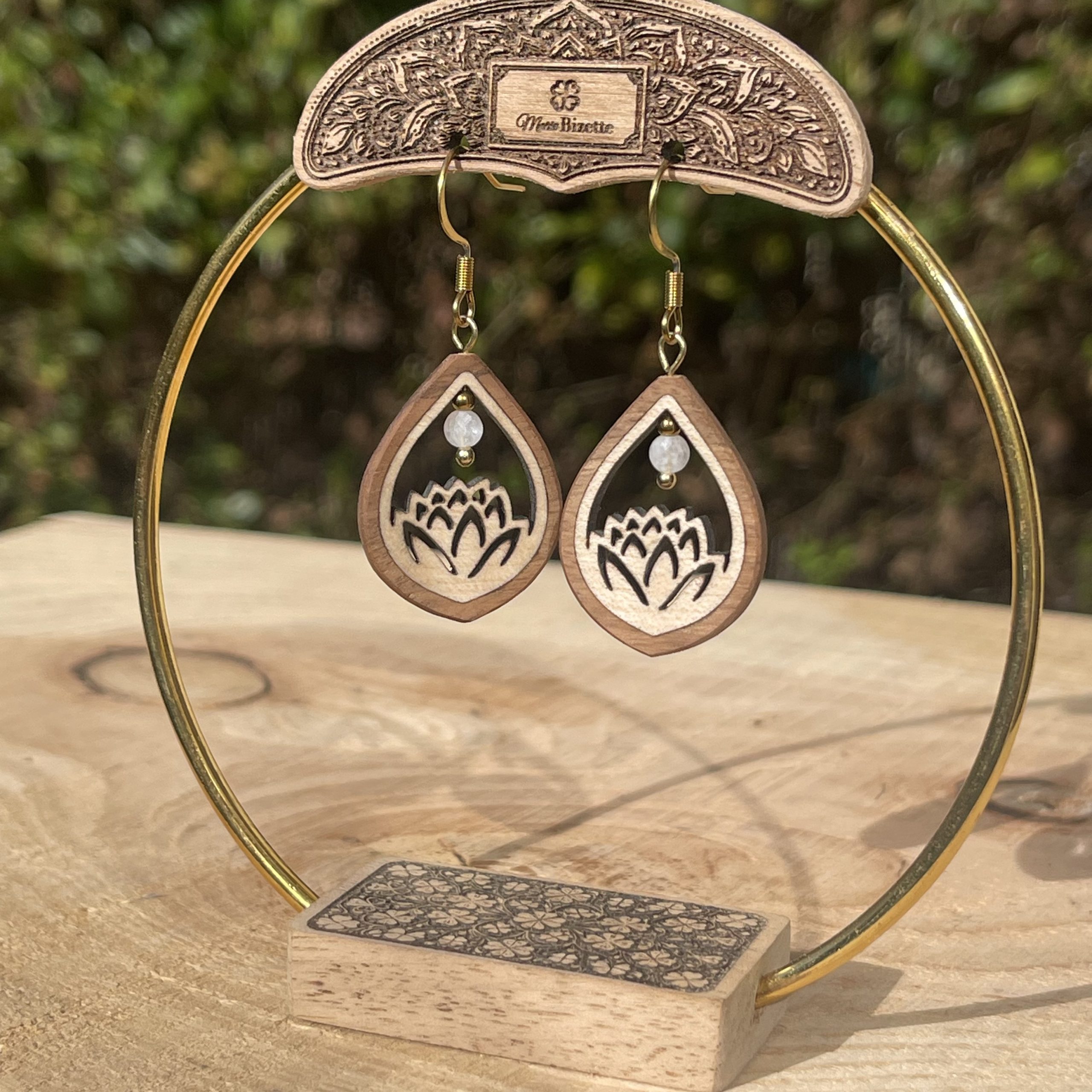 Un bijou délicat inspiré de la fleur de lotus, symbole de sérénité et d’équilibre, fabriqué en bois français et assemblé à la main.